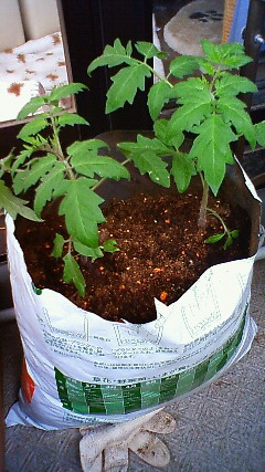 ベランダで育てたいと言ったら、トマトはベランダにぴったりで、花と野菜の土を袋のまま使ってやってみなさいと言われました。