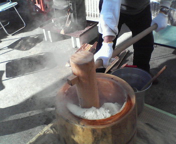 今日はMちゃんちで『餅つき』です。ここ数年、畑仲間が集まって、年末の恒例行事になってます。