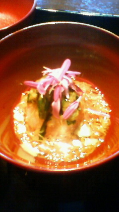 中に鮭や銀杏の入った団子に出汁の濃い餡がかかった煮物?のような一品。