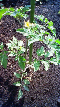 脇目は全部摘んで、一本立ちに育て、水も極力控えると甘いトマトが取れるそうです。