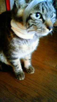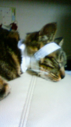 首に巻いたガーゼとテープが煩わしいのでとろうとするのですが
