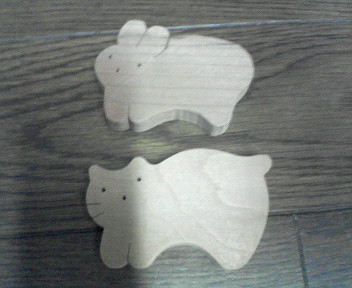 ねことうさぎ 今日、何となく出かけた先で 体験教室していたのでやってみました。 初めての電動糸のこぎりですぅ。 他所の子は楽しそうにやってましたが、 我が家の子供たちは二人して難しい顔してチャレンジしておりました。 でも、満足してました。 作品は玄関に飾ってあります。(置いてある?かな?) 素敵なカントリー雑貨などを見てきました。 ああいいなぁと思いましたが 我が家には合わないので却下です・・・・・・。