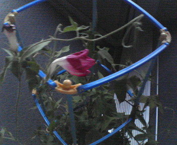 支柱にそって育ってくれないのであさっての方向に伸びています。