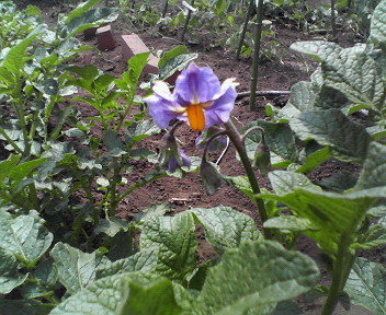 じゃがいもに肥料をあげていてきれいな花が咲いているのに気づきました。
