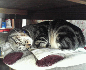 リビングの椅子でお昼寝の桃太郎