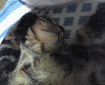 寝ている桃太郎君です。